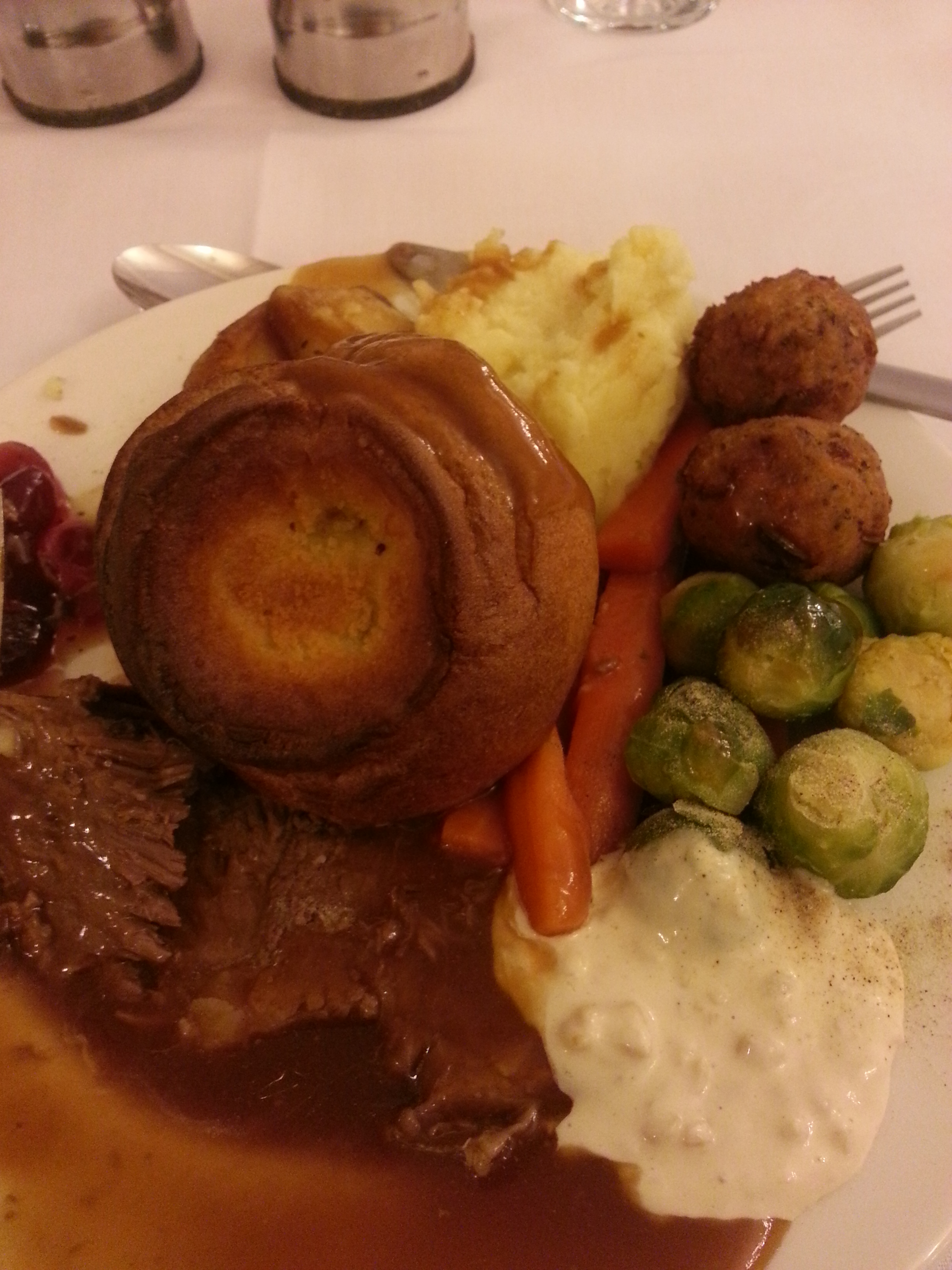 For the main course there was a choice of beef, turkey or steak pie. We went for turkey and beef. Both very tender and tasty. The beef melted in the mouth and was not tough in the slightest so there was no saw work involved or vegetables flying off my plate. Same goes for the turkey nice and moist.