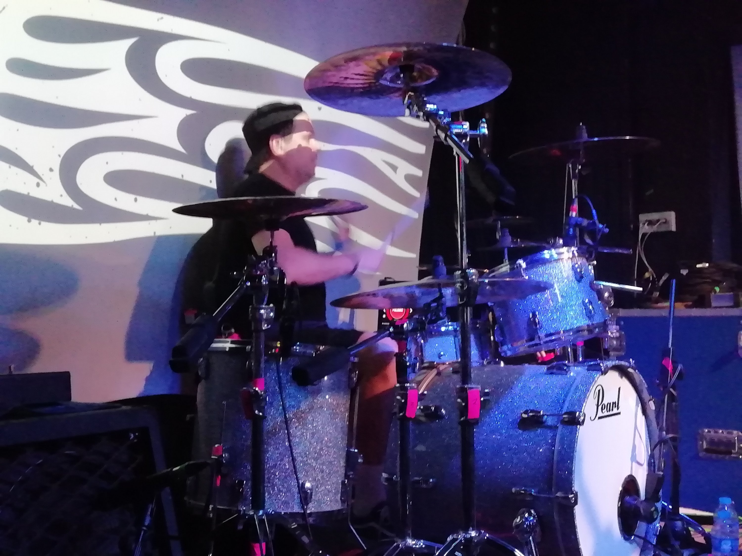 The switch over seemed a little longer this time and when you don’t have a beer to look into it probably doesn’t help. But the stage was a hive of activity as the next bands equipment was set up. And wow, they looked to have a complicated set up so I can forgive the wait.