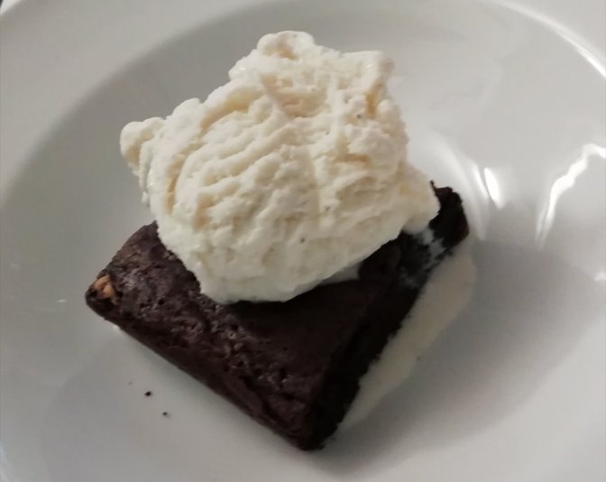 The chocolate brownie was just the right size really, it was rich so you wouldn’t have needed anymore and it was warm with a good consistency. It came with a choice of ice cream, cream or custard.
