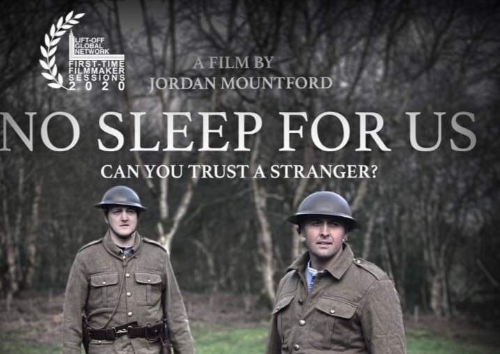 This short film ‘No Sleep for Us’ directed and written by Jordan Mountford is based in the time of WW1. It follows the story of ‘Will’ a soldier, played by myself, who has deserted his position and fled. Will has been suffering from PTSD.We know this of course today but back then such an act was seen as cowardice and would mean certain death if caught, such was the punishment.