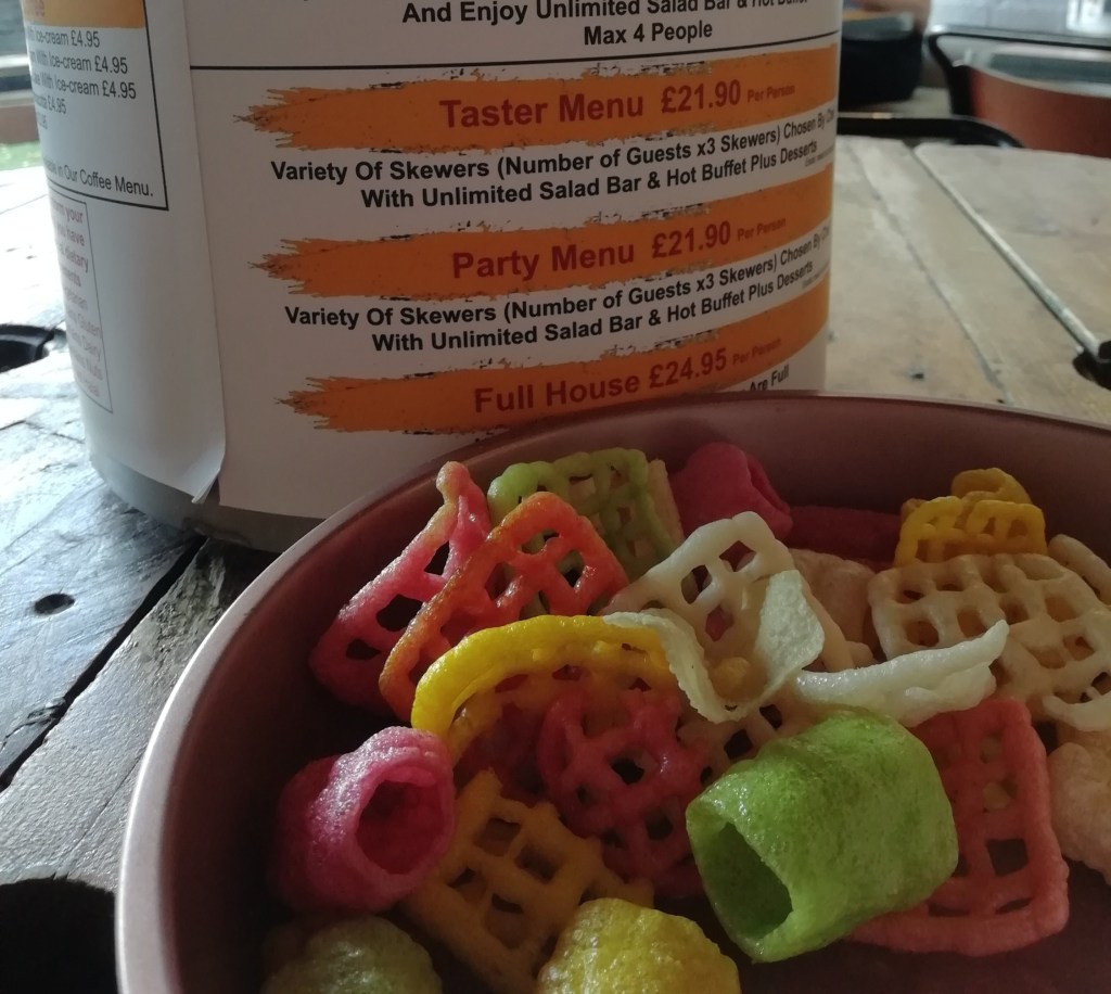 Our drinks orders were promptly taken and we were told we didn’t need to order as food would just be brought to our table. A large dish of crisps was placed on our table while we waited for the food to be served. The tables were quite large which was a good job as you needed a good amount of space to fit your food.