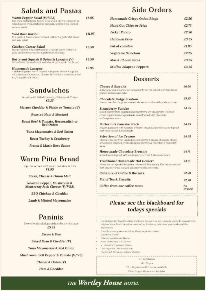 Brand new menu launched, with 25% off at The Wortley on Rowland Road.
