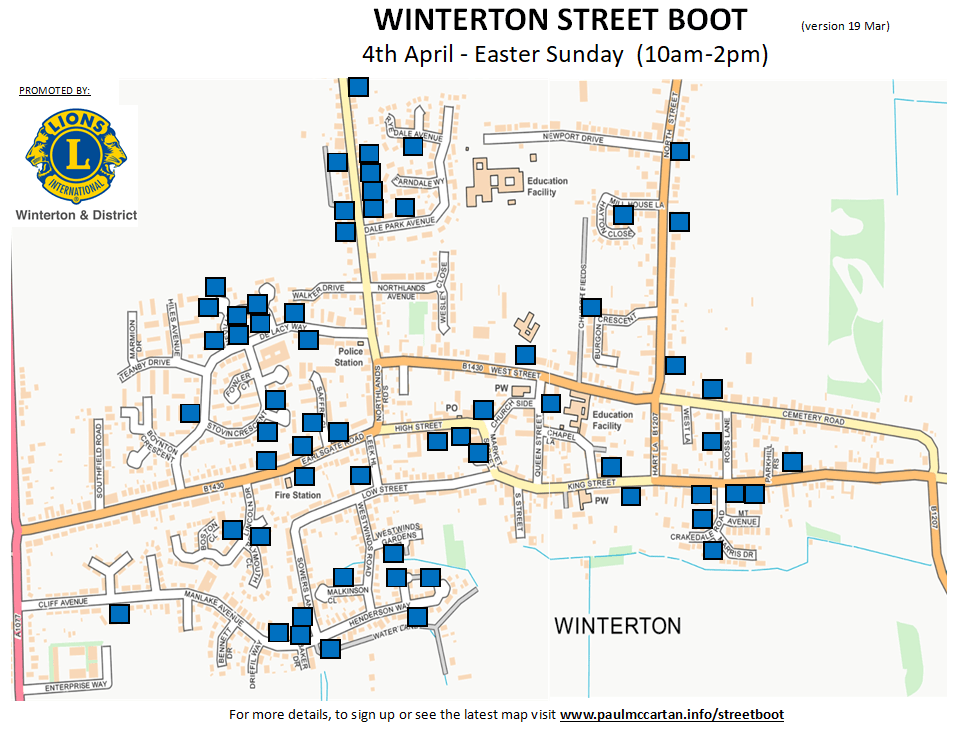 Winterton Street Boot returns on Easter Sunday 4th April. Over 60 houses have signed up so far and applications are still open to residents of Winterton.