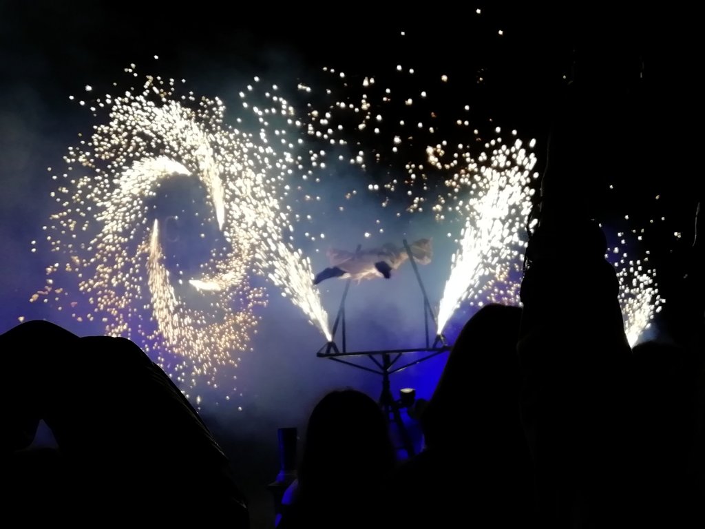 It was probably a new experience for many of the audience members, especially the younger viewers. It was a moving theatrical performance, it wasn’t the type of show you set your picnic blanket down and stare forwards, the audience moved with the show around the arena. People strutting around to different viewing spots as the flames passed them by and wondering where the next flash or bang was coming from. Unpredictability added to the night.