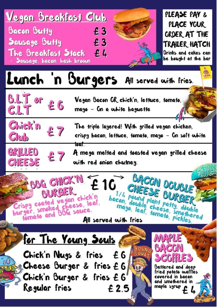 They’ve covered guest spots on a weekend selling their Vegan Junk food from the airstream caravan inside the venue. Usually just a one day thing, the food doesn’t last long due to popularity.