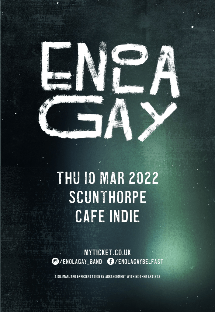 Enola Gay. Belfast, UK. Belfast-based Irish noise-punk 4-piece formed in late 2019. Offering venomous hip-hop-inspired vocals that are as uncompromising as the guitars are unforgiving, layered on a rhythm section that draws as much from left-field electronica and techno as it does from post-punk heroes of the late 70s.