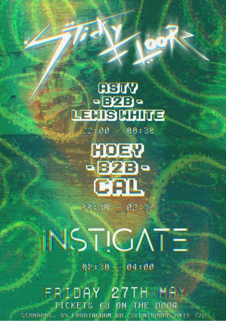 Hosted at Schnapps Sports Bar and Nightclub. The Sticky Floorz residents link up with Instigate for a great night on the 1s and 2s.