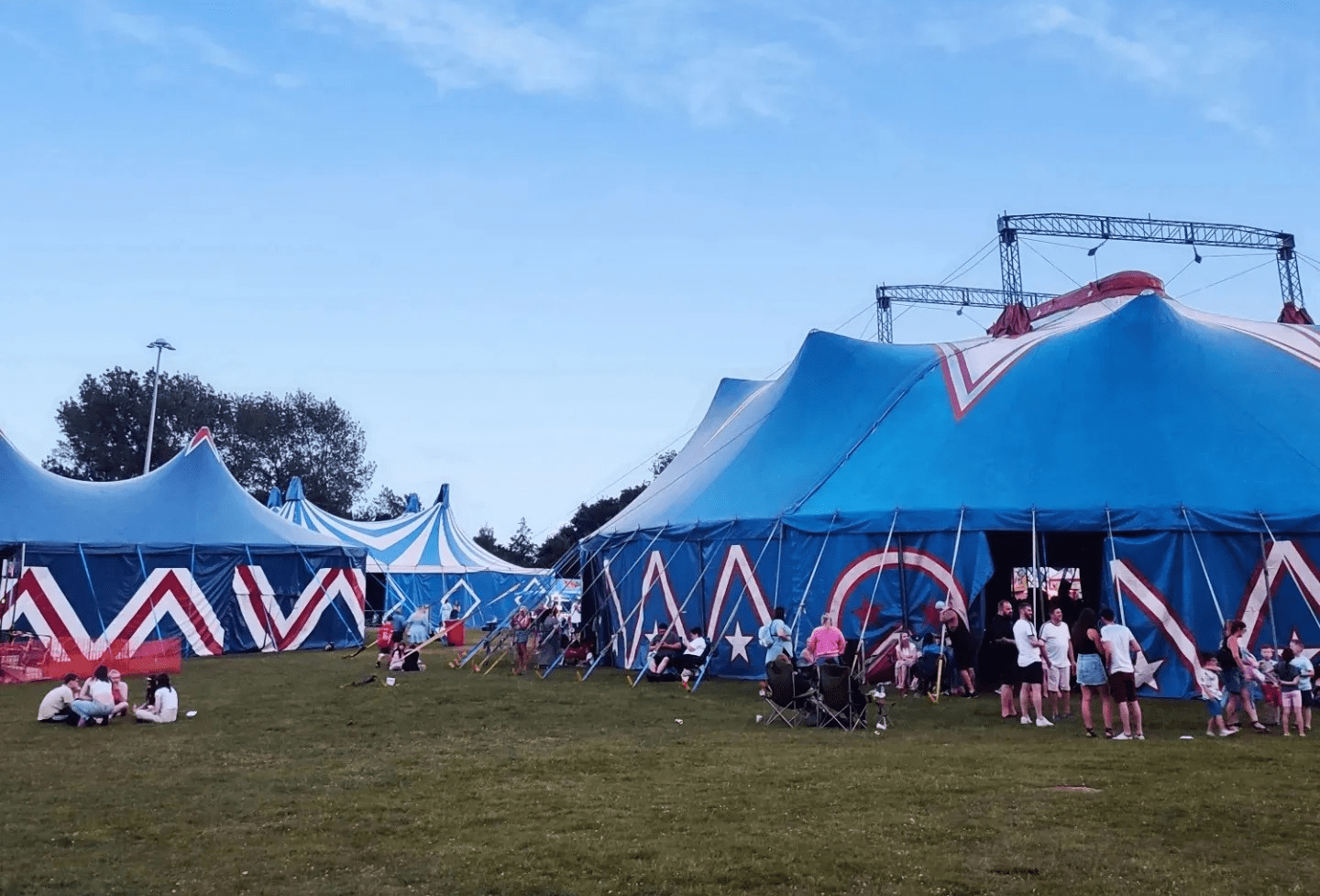 The big top housed the main stage (as below) and it wasn’t lacking in impact inside or out. Once the sun went down and the stage lighting could take full effect it was even better. Looking up at the high roof canopy that was printed with stars, the CO2 cannons firing out bursts of smoke that got the crowd excited. Ryan Swain entertained the crowd between acts with his DJ set, games and singing along to tracks over the mic. I’m pretty sure he hosted the stage at one of the first Party In The Pines events in Broughton, but that was a long time ago and he looks very different.