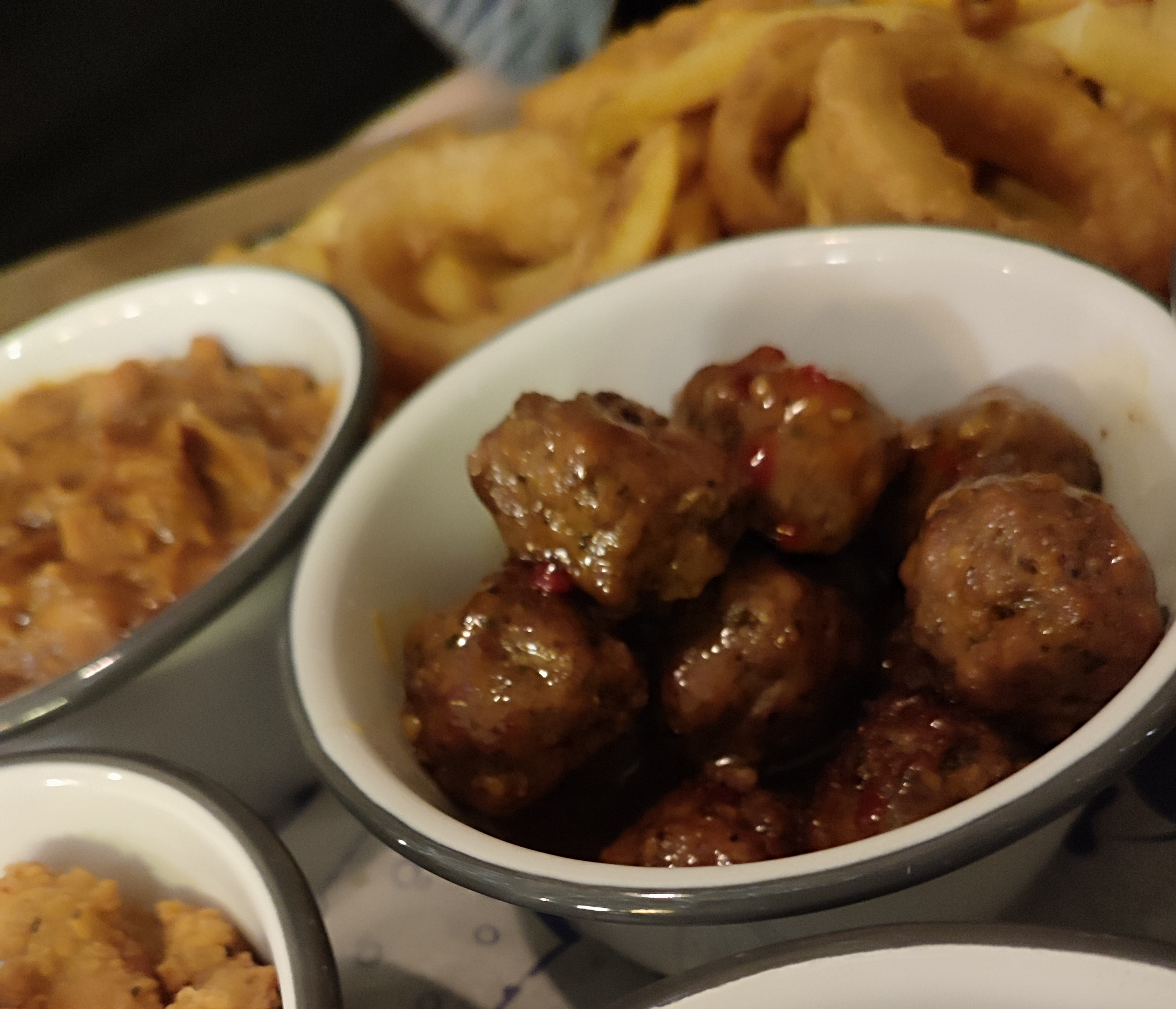 The Jerk Chicken certainly had a spicy kick, The Pulled Pork in Seasoned Gravy was thick and indulgent, crispy Salt & Pepper Chicken Strips, Moroccan Lamb Meatballs & Crispy Garlic Mushrooms.