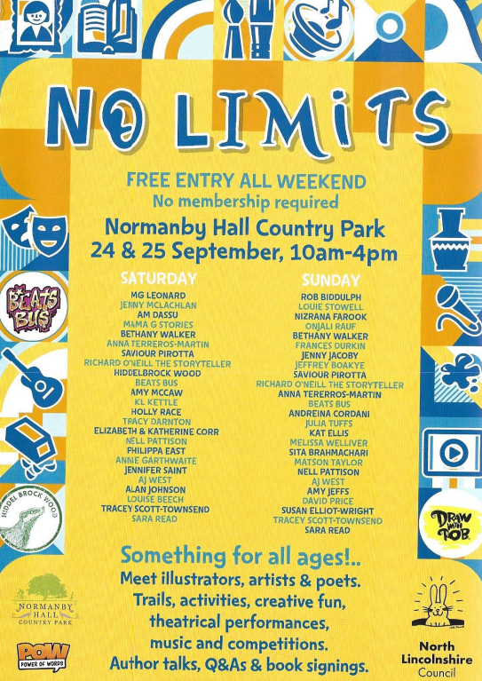 No Limits Festival will be held at Normanby Hall Country Park on the weekend of 24th and 25th of September for a weekend filled to the brim of events celebrating, books, stories, music and the creative arts.