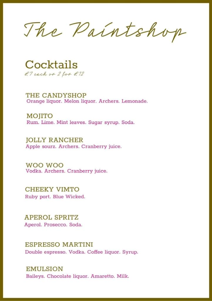 It was just a quick visit, hoping to return soon for longer but we thought we would pop in and have a look at the new Paint Shop cocktail bar on Ashby High Street. It’s rather disguised, even though its a large unit, it’s a working progress on the exterior curb side and if you don’t know it’s there, you might miss it.