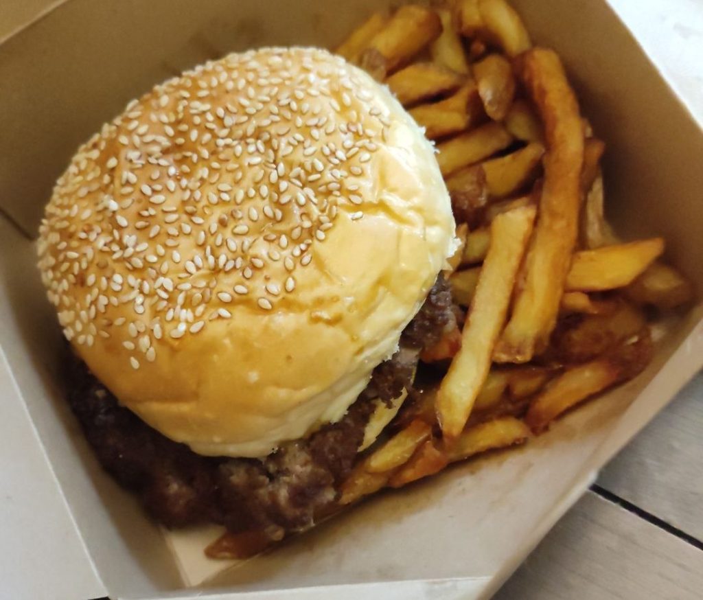 The kid’s meal, the burger was a decent size for £5.99 and the chips were crispier in this box without the steak juices obviously. My daughter said the chips were her favourite!
