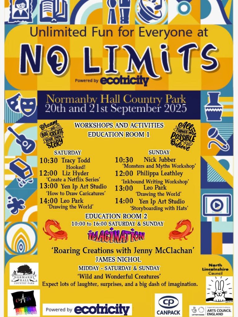 No Limits Festival returns to Normanby Hall Country Park this Saturday and Sunday for the fourth year in a row. FREE family-friendly weekend celebrating the creative arts, with authors, illustrators, poets, musicians and so much more!